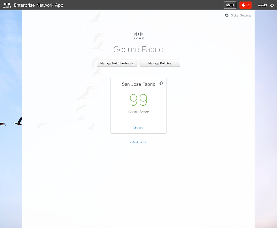Once the fabric has been created and provisioned, it is “live”. We designed a dashboard to monitor the health of the fabrics. This is what M&T is all about.