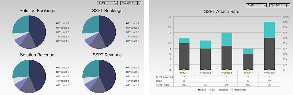 Figure 1 – Client mockups for comparing bookings (left) and attach rates (right).