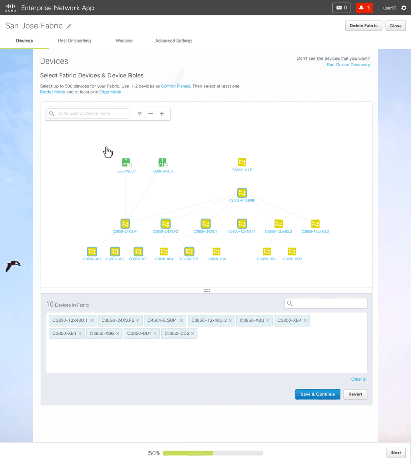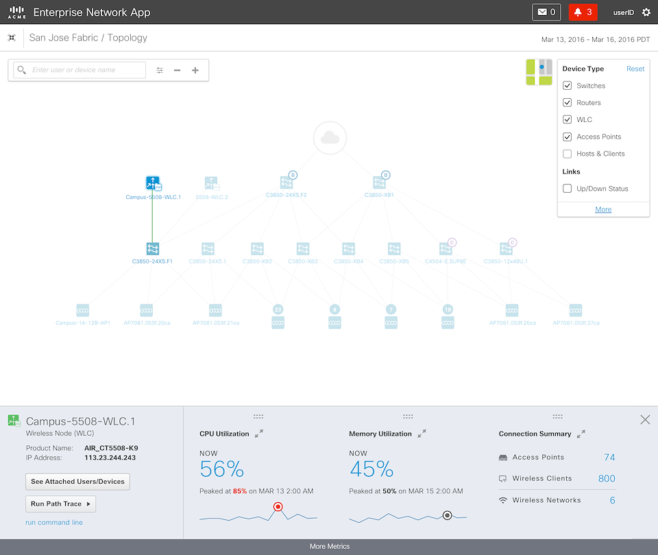 For Provisioning, we extended the design pattern from wired Provisioning. Wireless controllers will show up on the topology and can be added to the fabric, just like any other network device.