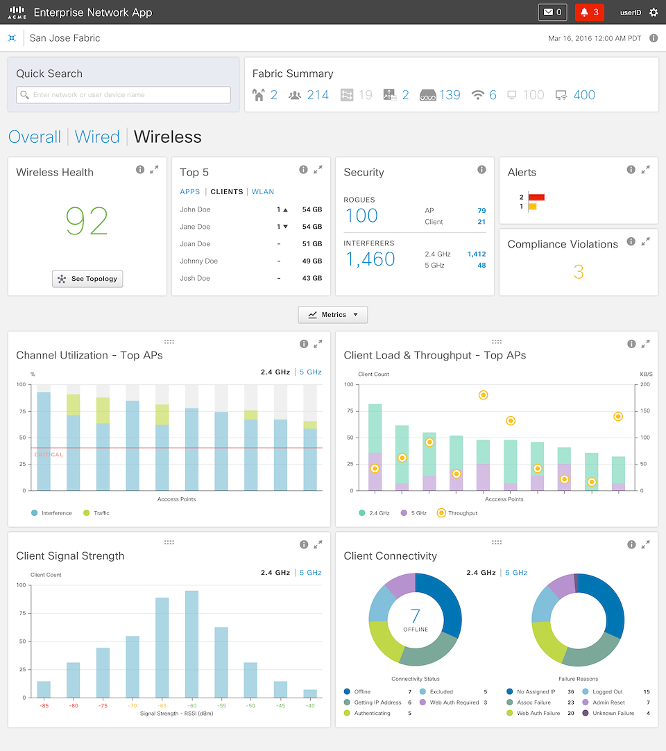 Figure 4 – We designed three different dashboards for three different purposes. The one shown here is designed for the Wireless administrator.