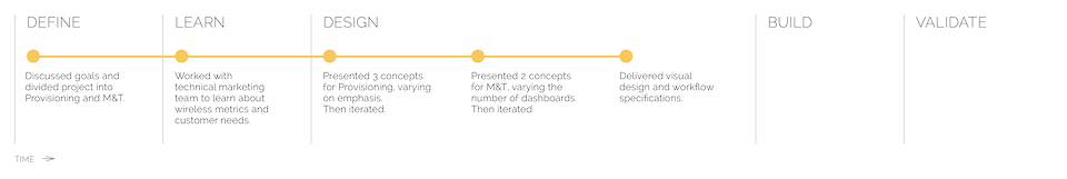 As seen in the client’s Provisioning wireframes, the focus was placed on the wireless controller (a device) because it is a backend prerequisite. However, we felt that to improve the user experience, more of the focus should be shifted to the wireless network itself.